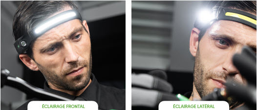 - COB avant (350 Lm): large faisceau pour les inspections générales.